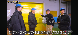 番組内では、ひろゆきチームが使用している生地として、当社素材「NOTO SNOW」が紹介されています。